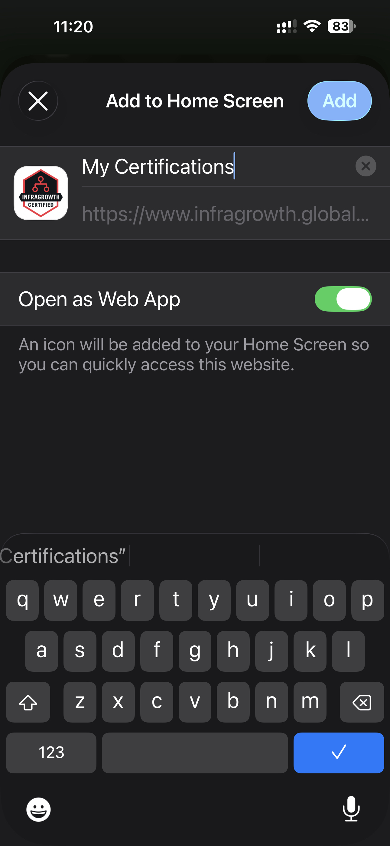 βLogin to infragrowth on your mobile device. Go to your certification page.